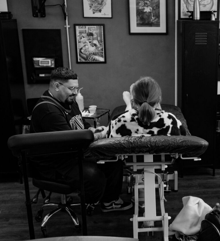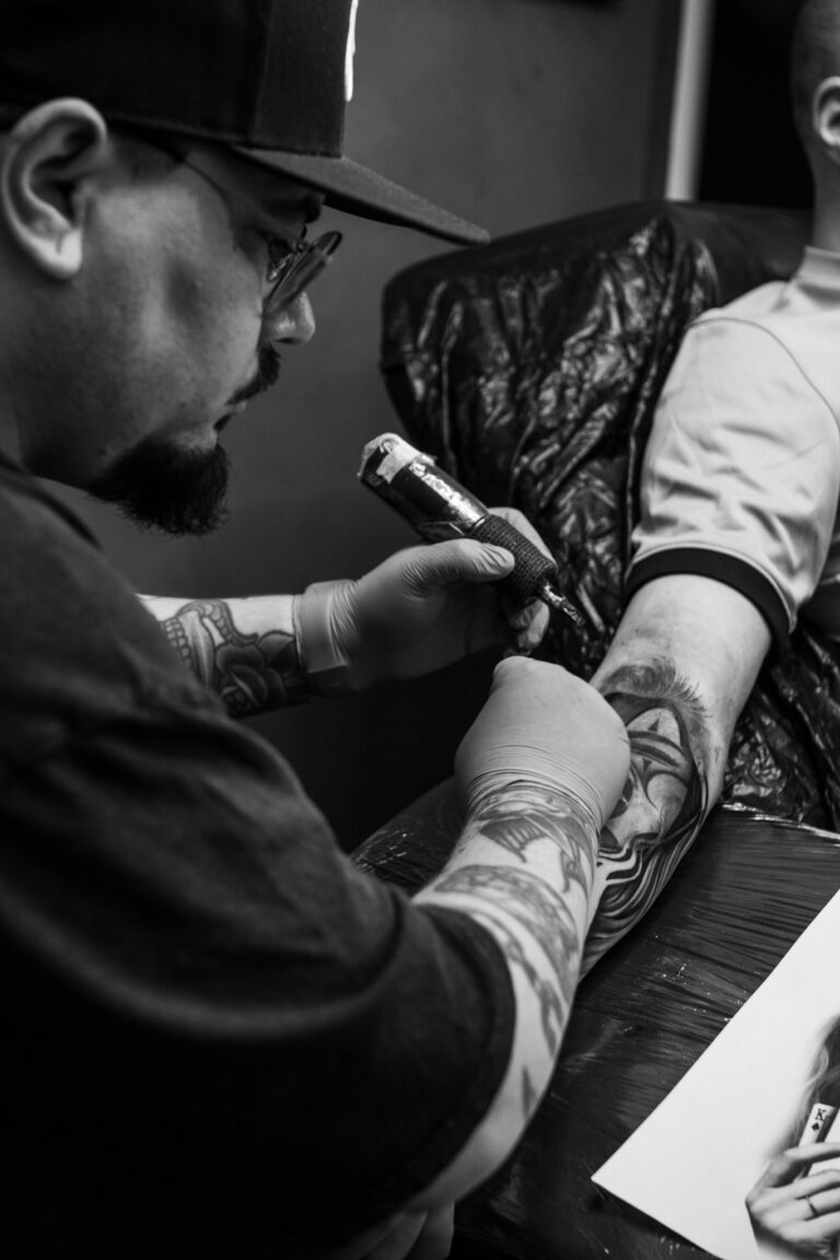 Jay Johnson, an NMT OG, has been tattooing for over 11 years. Specialising in black and grey realism, Chicano, portraits, and animals. His passion for tattooing is reflected in the volume of detail he applies to every design and the striking finished result of his healed work.